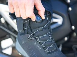 Ogromna prednost za motocikliste je ta što se podešavanje može vršiti bez skidanja rukavica, a rizik od toga da se pertle zakače za polugu menjača ili zadnje kočnice je u potpunosti eliminisan.