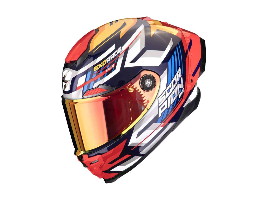 Dizajnirana za velike brzine nova kaciga Scorpion EXO RACE Air, sposobna da garantuje ekstremne trkačke performanse i superioran nivo udobnosti, kako na stazi tako i na putu. Može se pohvaliti naprednim tehničkim karakteristikama kao prva prava racing kaciga iz linije Apex. Ova kaciga poseduje školjku od Carbon Matrix vlakana koja garantuje visoku otpornost na svaki udarac, dok zadnji spojler, podesiv rukom, povećava aerodinamičku stabilnost pri velikim brzinama, nudeći mogućnost uvlačenja kako bi se dobio kompaktniji profil za gradsku vožnju.