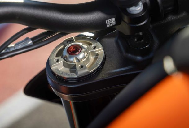U centru pažnje nalaze se APEX PRO 8500 Cartridge i APEX PRO 8750 zadnji amortizer, dve ključne komponente koje predstavljaju vrhunac inženjerskog razvoja ovog proizvođača. Prednja kartridž APEX PRO 8500 jedinica razvijena je na osnovu iskustva iz WP Factory Racing programa i koristi zatvorenu „closed cartridge“ tehnologiju, koja obećava značajan iskorak u preciznosti upravljanja i komforu. Poseban akcenat stavljen je na bolji osećaj kontakta sa podlogom, povećanu sigurnost pri kasnijem kočenju i izraženiju kontrolu u graničnim situacijama, uz zadržavanje udobnosti u svakodnevnoj vožnji.